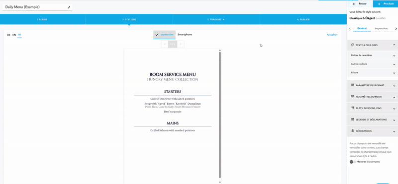 - Après avoir rédigé votre menu, cliquez sur « 2. Styliser »