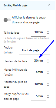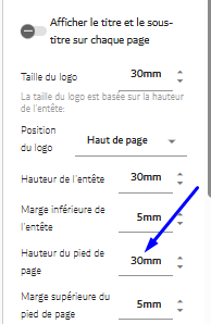 Comme pour l'en-tête, la hauteur du pied de page peut être ajustée pour répondre à vos besoins de conception. Saisissez la hauteur souhaitée en millimètres (mm). Le pied de page est généralement utilisé pour des informations supplémentaires telles que les coordonnées, les liens vers les réseaux sociaux ou les mentions légales.