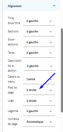 - Vous pouvez également ajuster l'alignement de la note de bas de page selon votre choix :