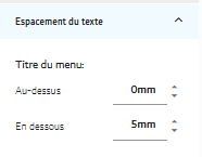 L'espacement au-dessus et en dessous du titre du menu peut être ajusté pour garantir que le titre se démarque et est correctement espacé des autres éléments. Ce paramètre vous permet de personnaliser la quantité d'espace à la fois au-dessus et en dessous du titre.